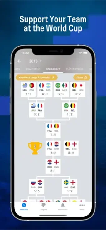 O aplicativo Sofascore é seu banco de informações instantâneas exibindo detalhes vitais do torneio, como pontuações ao vivo , previsões , resultados , estatísticas de jogadores e jogos, etc. em seus times favoritos e torcer por eles. Além disso, os torcedores também aproveitarão os dados exclusivos do histórico da copa do mundo , permitindo que você navegue pelo arquivo de partidas lendárias.