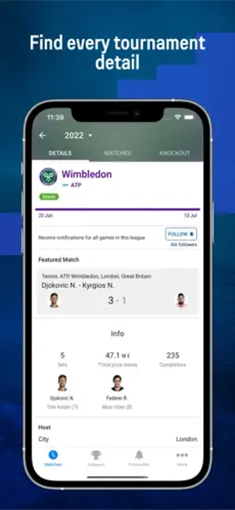 Ele permite que você estude e analise meticulosamente os jogos até os últimos 15 torneios da copa do mundo e compare as classificações dos jogadores, mapas de calor e desempenho de estatísticas, ajudando você a criar previsões de vencedor mais completas e baseadas em pesquisas. Ative as opções de notificações por push e experimente seus lembretes de alerta mais rápidos e precisos nos quais você pode confiar para obter uma atualização jogada a jogada, mesmo durante o horário mais movimentado.