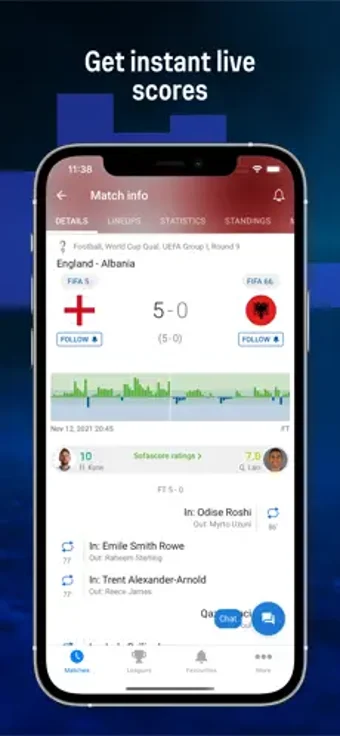 Com os resultados ao vivo do Sofascore - Esportes, você pode se envolver ativamente e analisar resultados ao vivo e estatísticas de suas partidas favoritas. O mais divertido é que ele pode fornecer a você um relato detalhado da tão esperada Copa do Mundo da FIFA 2022 .